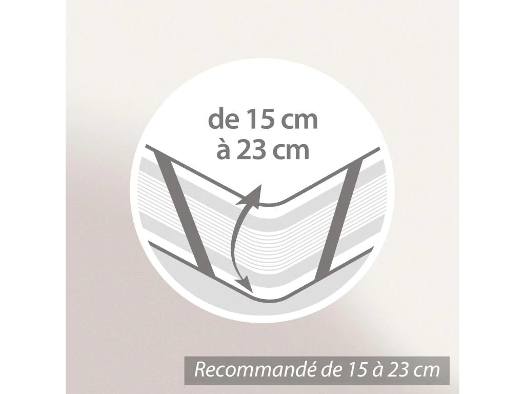 - Élastiques aux 4 coins de ~30 cm pour des matelas d’épaisseur de 15cm à 23cm