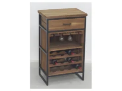 Étagère Murale Porte Bouteilles En Bois Et Métal Noir H 90 Cm