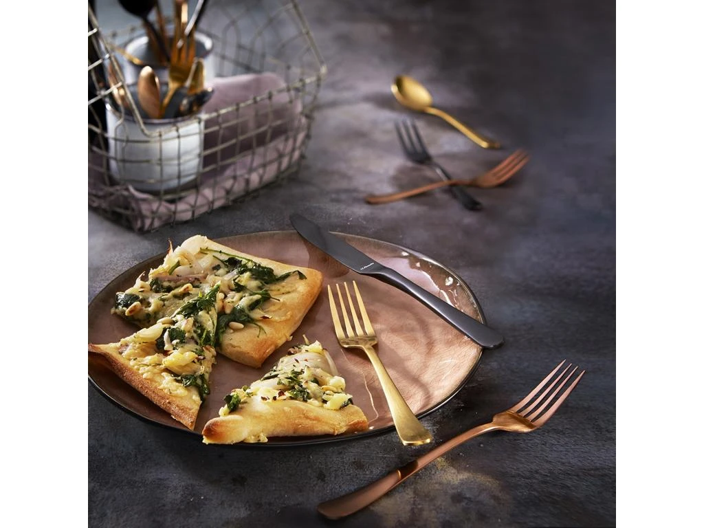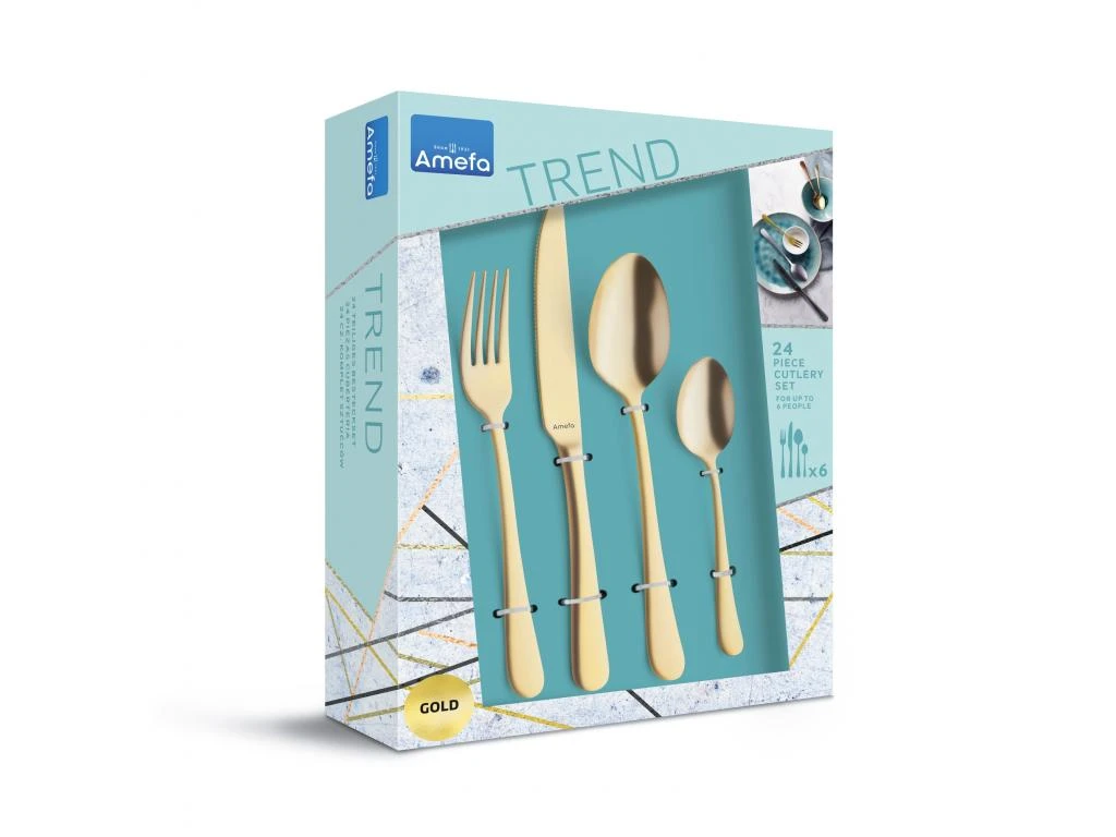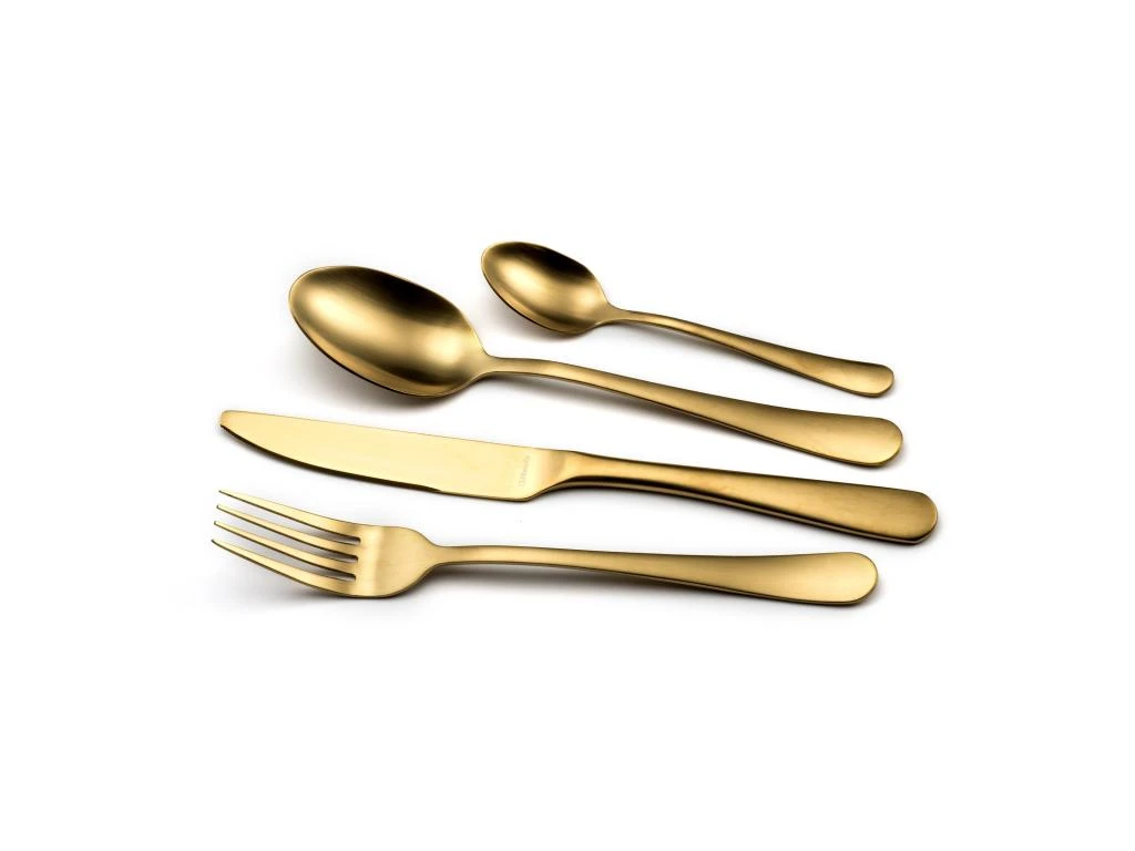 Ensemble de 24 couverts de la gamme Austin livré en coffret. Acier inox et finition PVD doré mat.