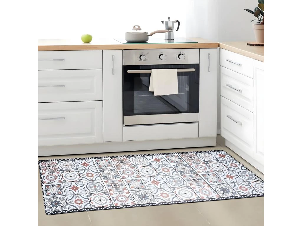 Superbe tapis de cuisine vinyle rĂ©sistant Ă l’eau avec mousse intĂ©rieure pour votre confort. Facile d’entretien, Il va apporter Ă votre cuisine une dĂ©co tendance. Disponible en deux tailles, 45×120 cm et 45×75 cm, et dix motifs.