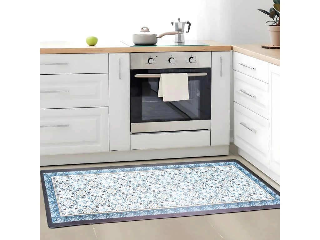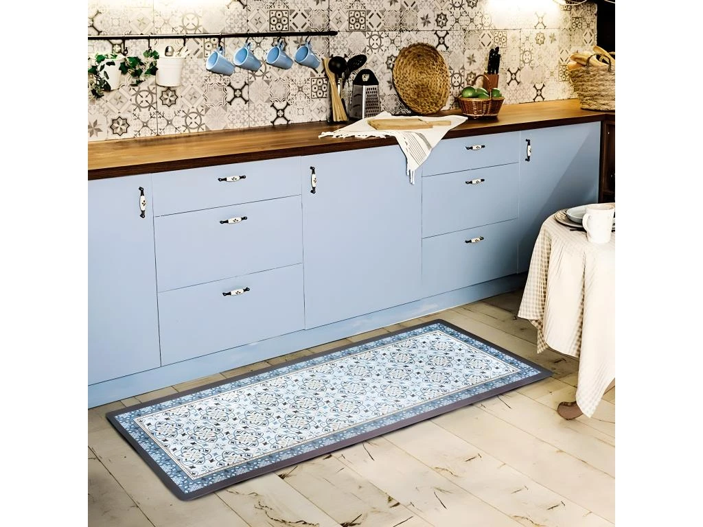 AZULEJOS VINYLE – Tapis De Cuisine Carreaux De Ciment Bleu Gris 45×120