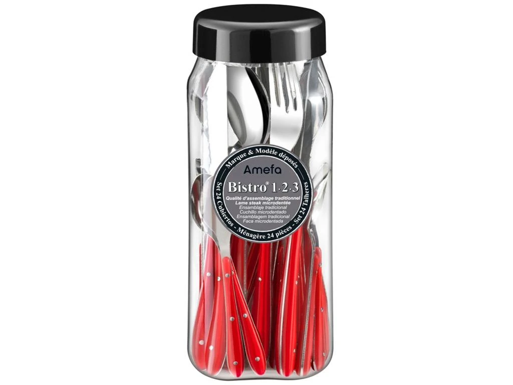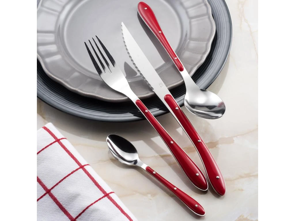 La gamme Bistro 1-2-3 est un intemporel de la table au quotidien. Des manches colorés que soulignent 3 rivets en inox