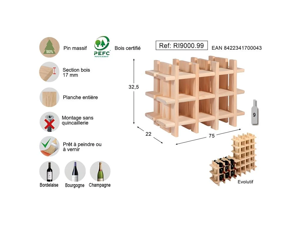 Pour 9 bouteilles de type bordelaise, bourgogne et champagne