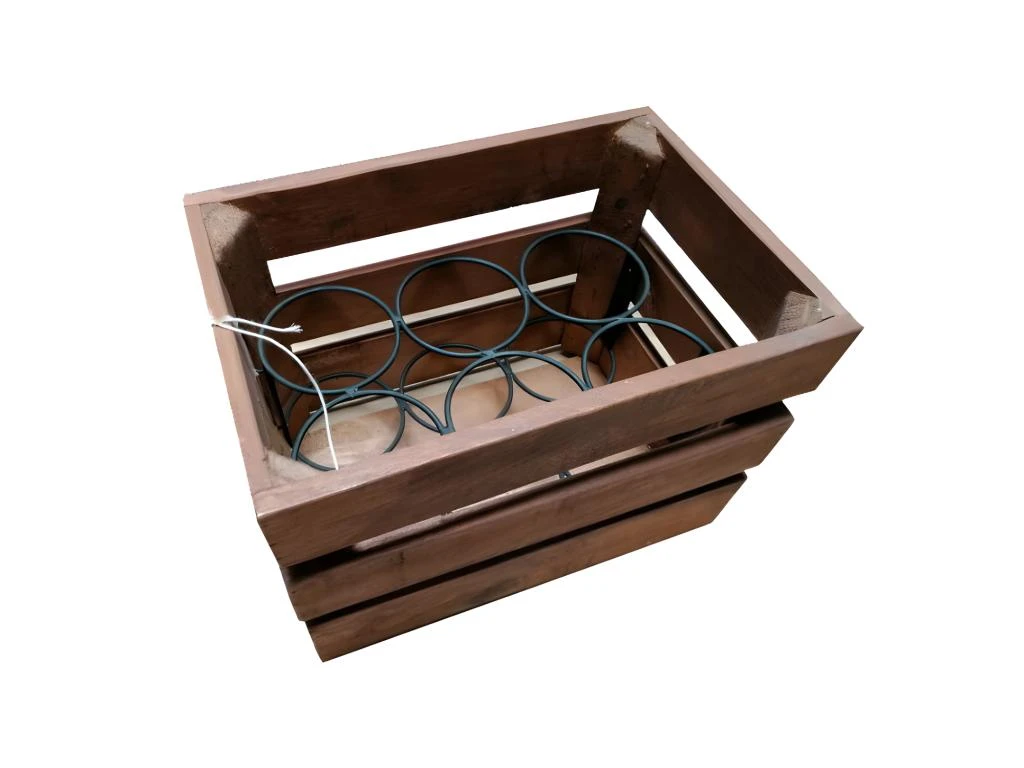 Un casier à bouteille « comme autrefois », en bois et métal, pour ranger les bouteilles avec style et élégance.