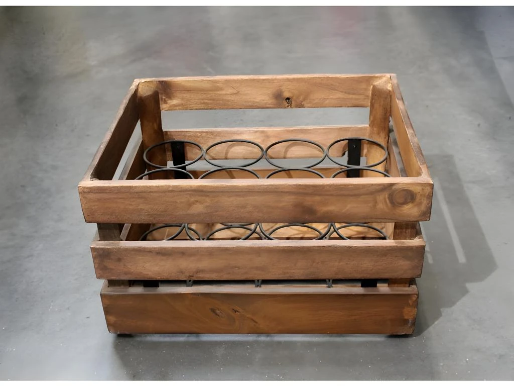 Mettez en valeurs vos bouteilles de vin grâce à ce casier à bouteille en bois et en métal.