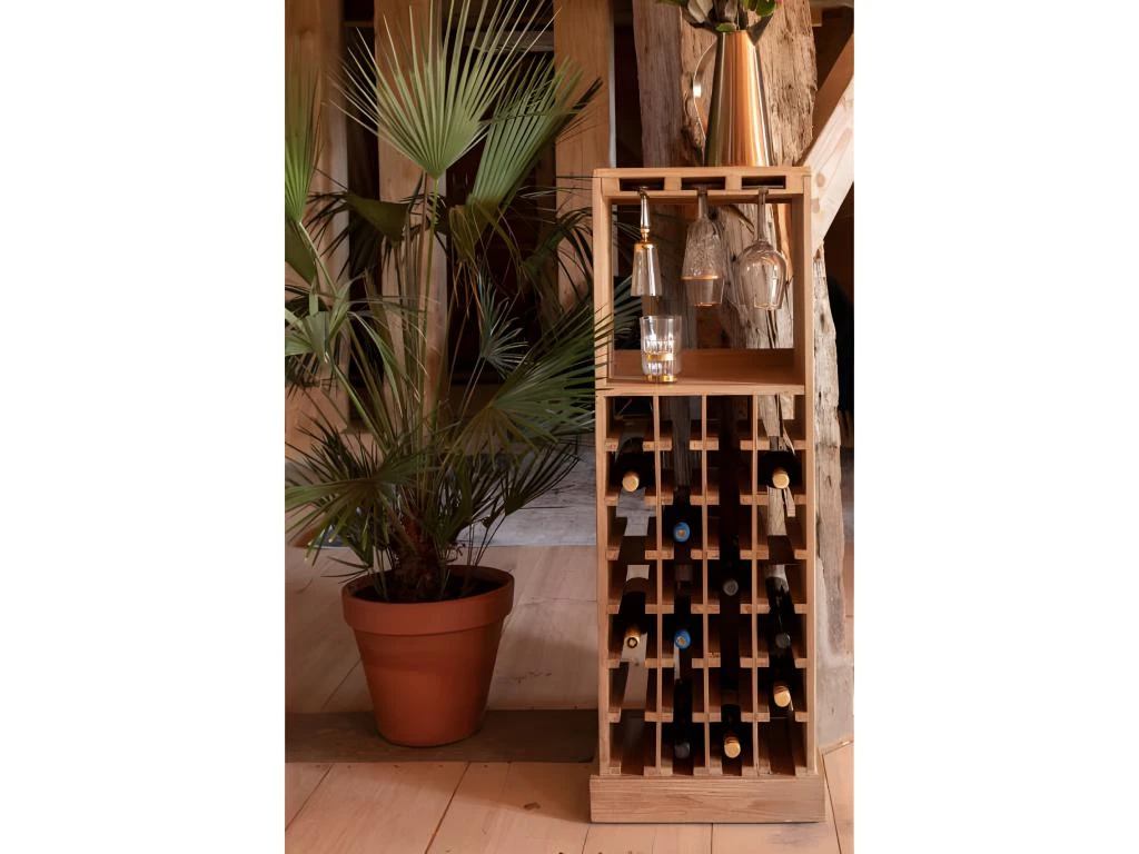 Meuble de rangement pour vos bouteilles de vin avec rampe Ă verres en bois de la marque Dutchbone.