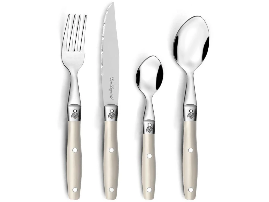 Ensemble de 24 couverts pour 6 personnes de la gamme Comptoir. Acier inox, manche coloré 2 rivets.