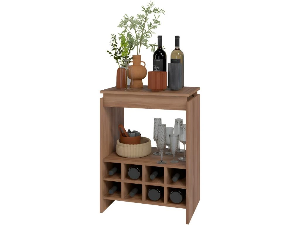 Console – Meuble BAR – Comptoir d’acceuil et Cusine Imitation Châtaignier 8 Bouteilles FLOAT.