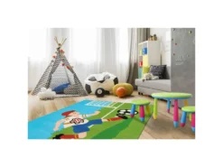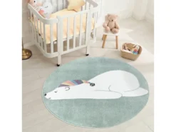 Tapis Rond Pour Chambre D’enfant Vert Motif Ours Blanc 160x160cm