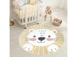 Tapis Rond Pour Chambre D’enfant Lion Jaune Et Blanc 160x160cm
