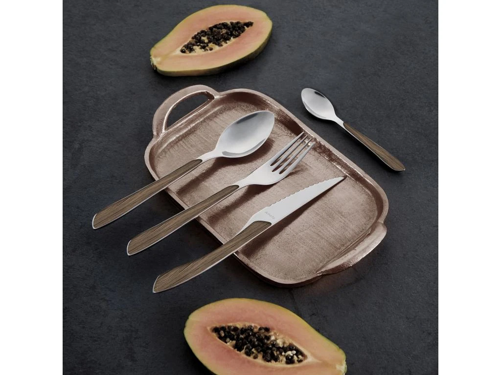 La gamme Eclat Nature réivente le couvert couleur avec son manche aux reflets de bois foncé. L’Eclat s’enracine avec ce décor nature et végétal qui donne à votre table une touche authentique.