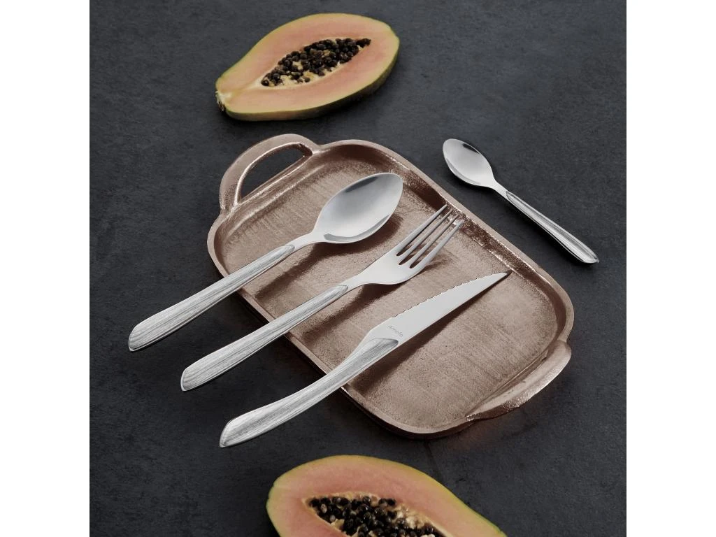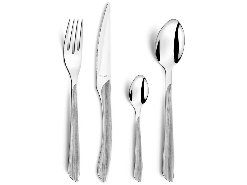 Evasion garantie avec cette déclinaison du célèbre modèle Eclat d’Amefa. Avec cet effet Bois Gris, il surfe sur la tendance « Nature » et s’associe à la brillance de l’acier pour devenir l’allié de vos repas quotidiens.