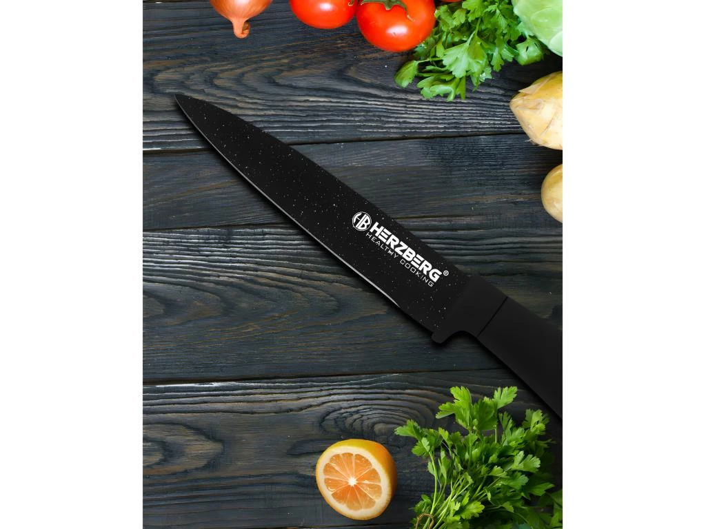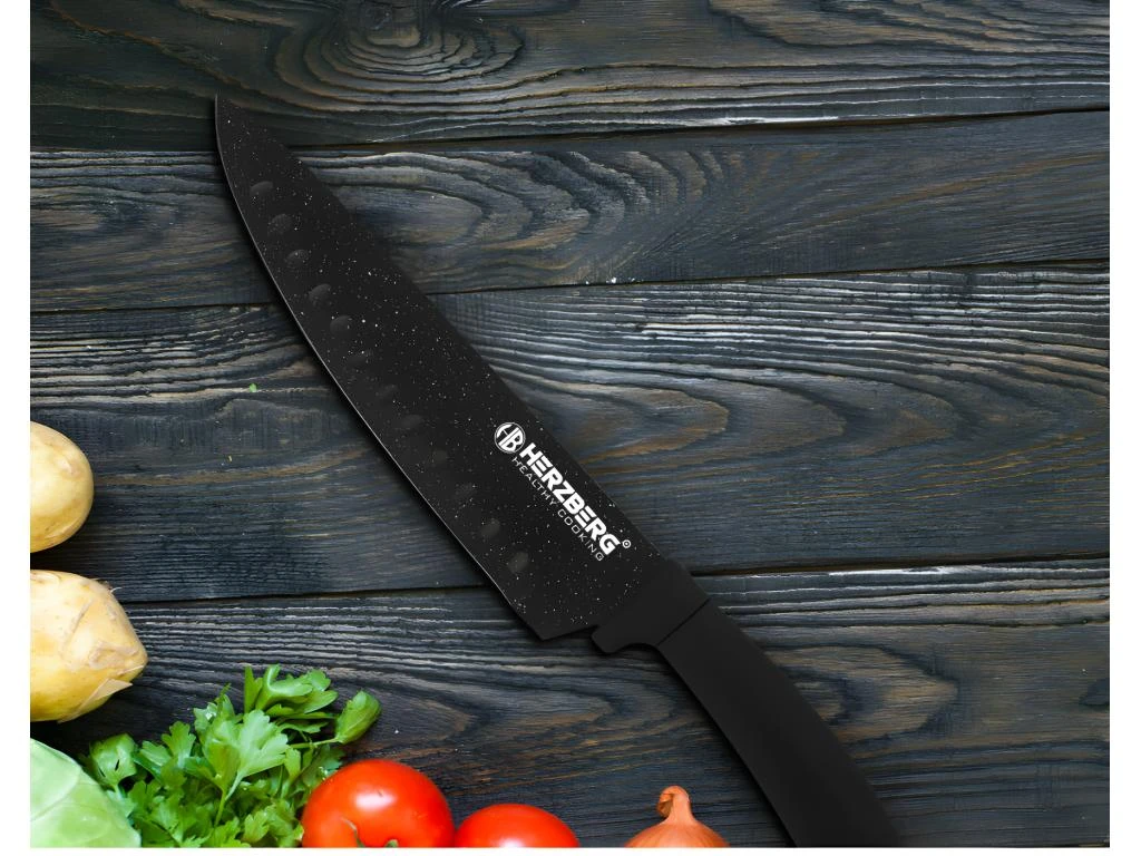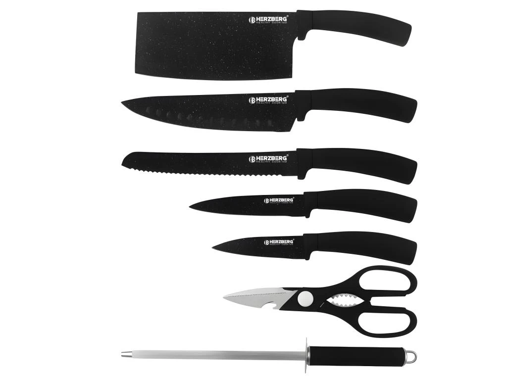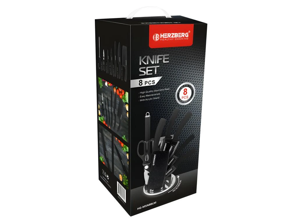 Herzberg HG-MSN8BLM: Ensemble de 8 couteaux avec support en acrylique – Marbre Noir