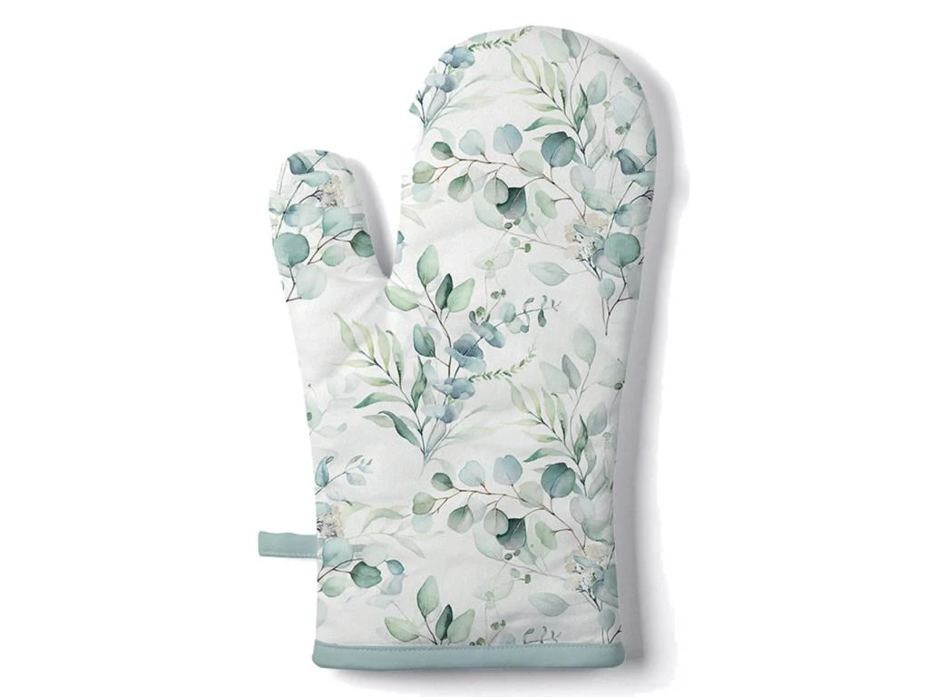 Gant de cuisine Eucalyptus Tissu extérieur : 100 % coton Garnissage : 100 % polyester Doublure : 100 % polypropylène Dimensions : 18 x 30 cm A l’unité