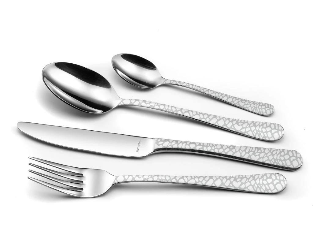 Modernité et originalité viennent embellir chaque pièce de cet ensemble de couverts. Grâce à un décor laser typé, notre modèle Graffiti Mozaïc se dote d’une personnalité unique.