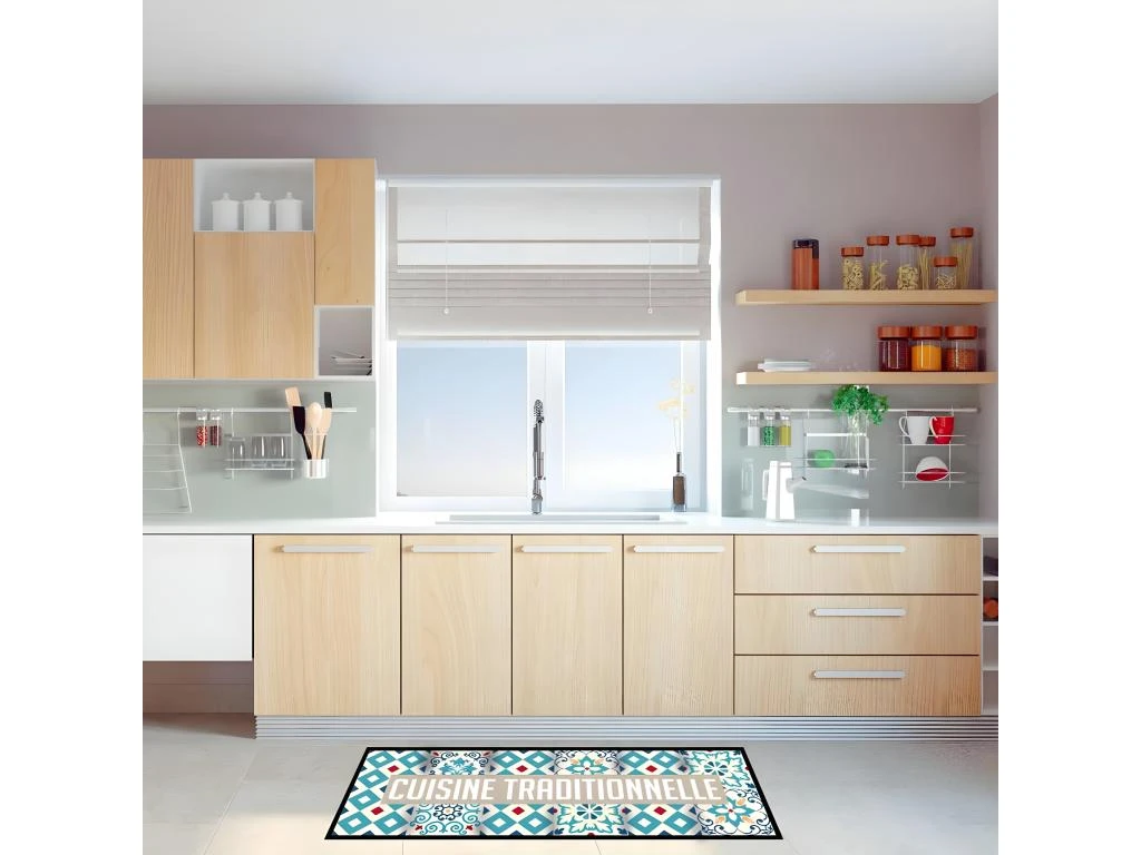 Tapis de cuisine 45 x 130 cm – Dessous PVC 100 % Polyester – Dessous PVC Dim : 45 x 130 cm