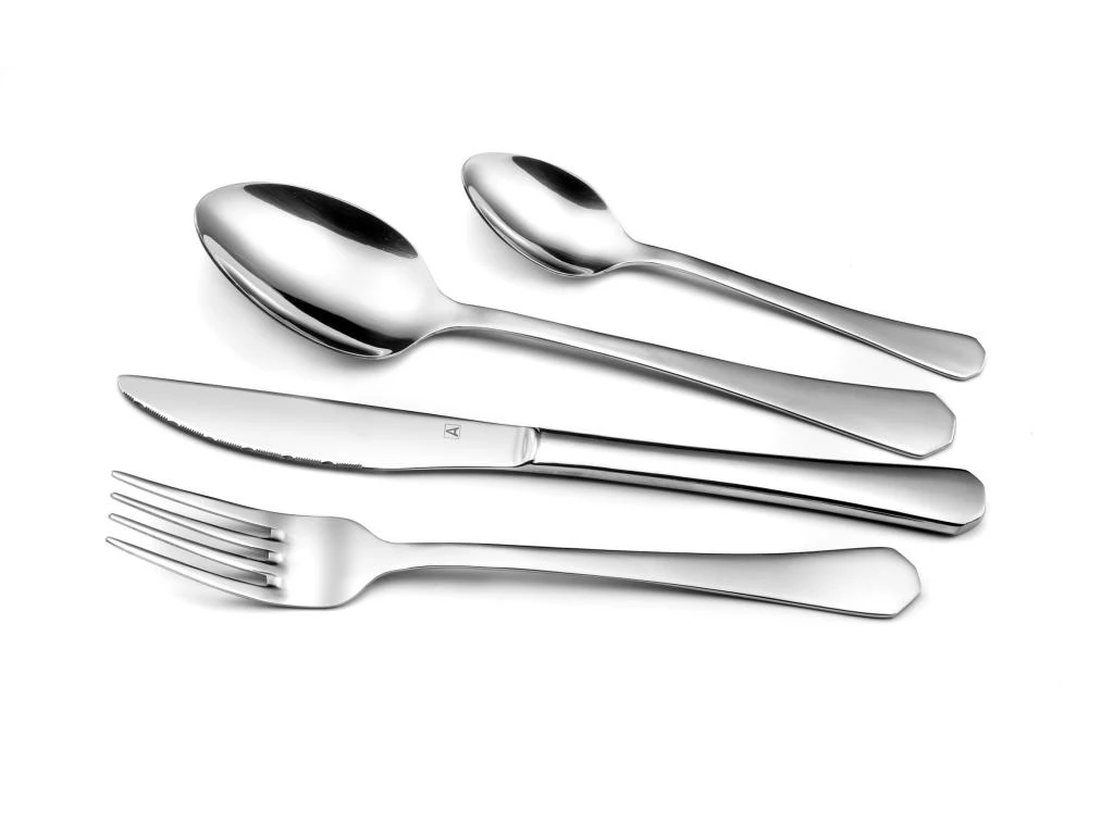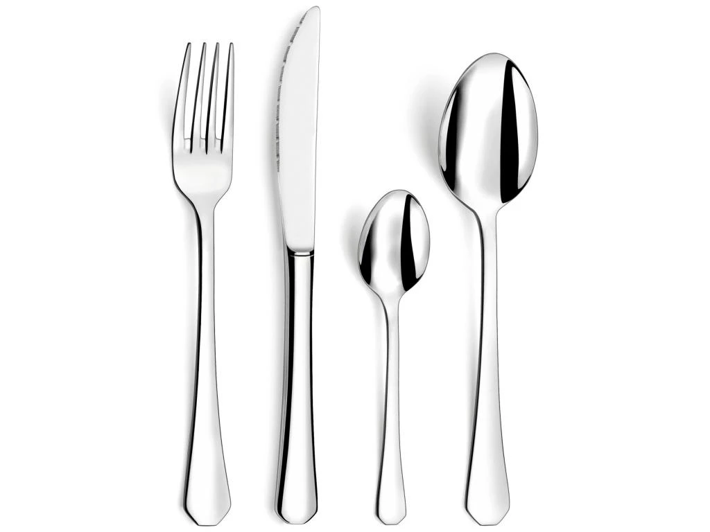 Ensemble de 24 couverts pour 6 personnes de la gamme Graphic livré en coffret. Acier inox et finition brillante.