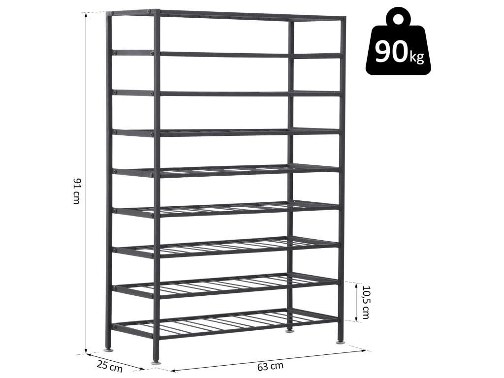 – Charge max. recommandée : 90 Kg(total), 10 Kg(chaque niveau)