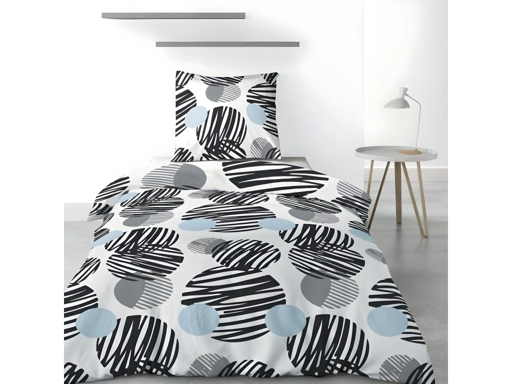 Parure de lit comprenant : 1 x housse de couette 140x200cm + 1 x taie d’oreiller 63x63cm