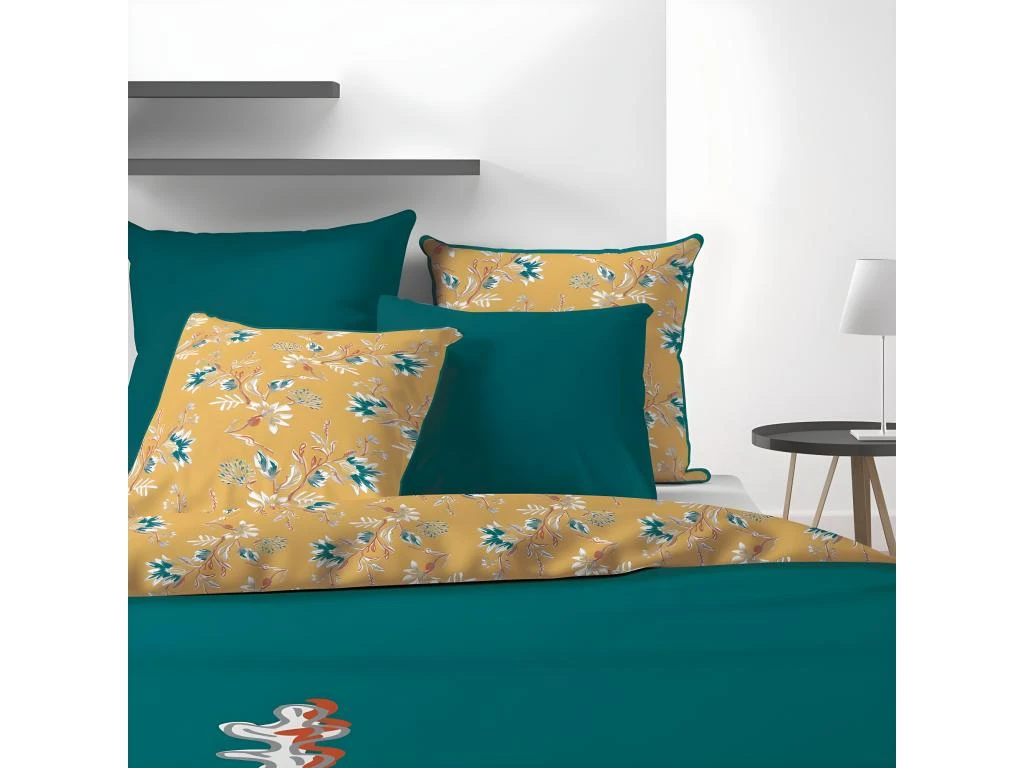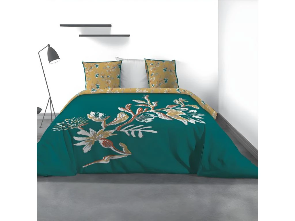Personnalisez votre chambre avec cette parure complète au design intemporel et unique. Le motif fleuri ressort dĂ©licatement sur le fond au coloris profond et crĂ©e une ambiance reposante au style Ă©lĂ©gant. De conception rĂ©versible, ce linge propose un verso Ă©lĂ©gant qui vient dynamiser l’ensemble lorsque vous vous amusez Ă rabattre le revers. ComposĂ© Ă 100% de coton au tissage serrĂ© 57 fils, l’ensemble vous diffuse sa douceur tout au long de la nuit et s’adapte Ă la tempĂ©rature ambiante au fil des saisons afin de vous assurer des nuits paisibles.