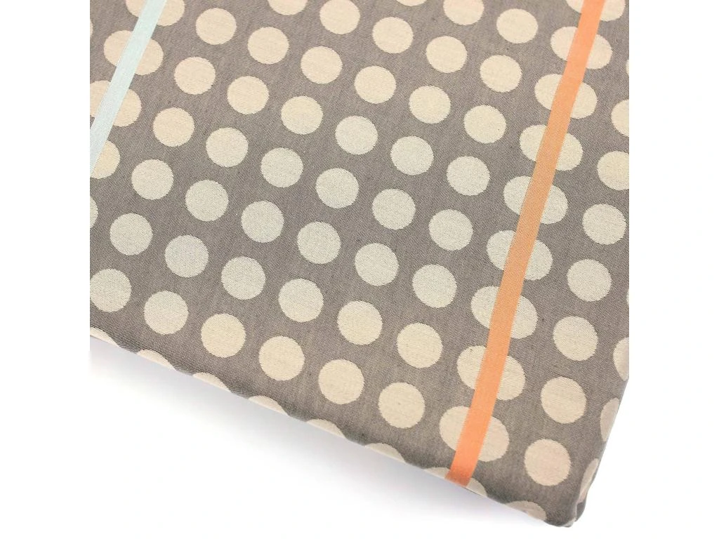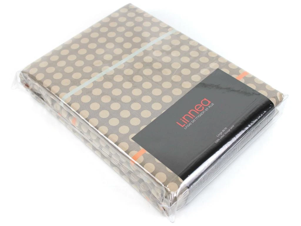 Housse de couette 260×240 cm avec une face en satin jacquard avec pois et liserés, et une autre avec pois marron sur fond marron clair.