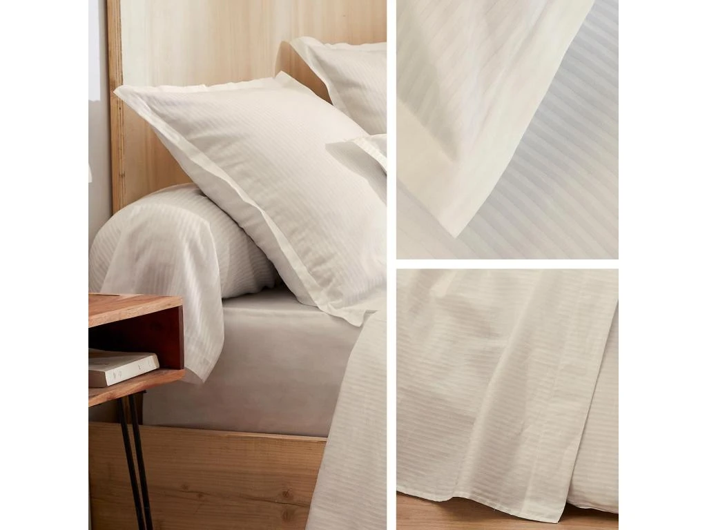 - Superbe qualité de tissu très souple et motif uni pour ce linge de lit en satin de coton.