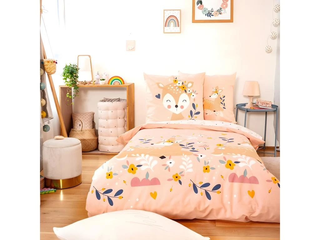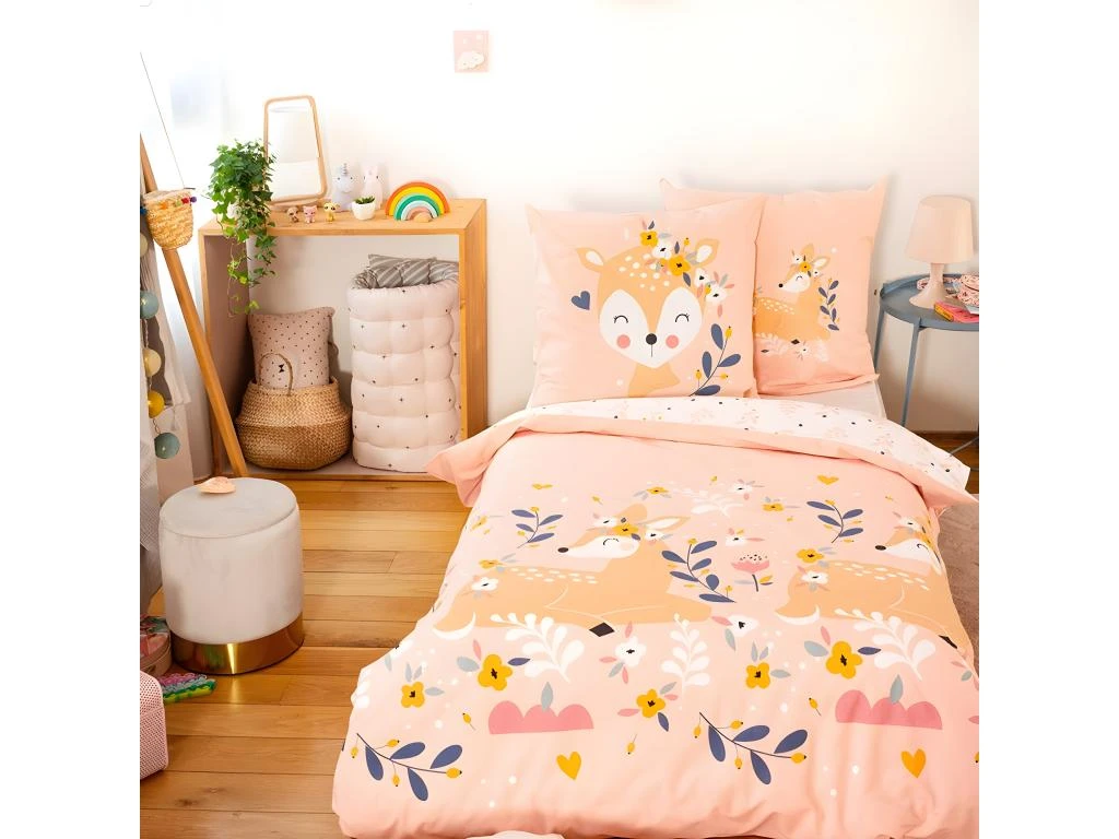 Parure de lit comprenant : 1 x housse de couette 140x200cm + 1 x taie d’oreiller 63x63cm