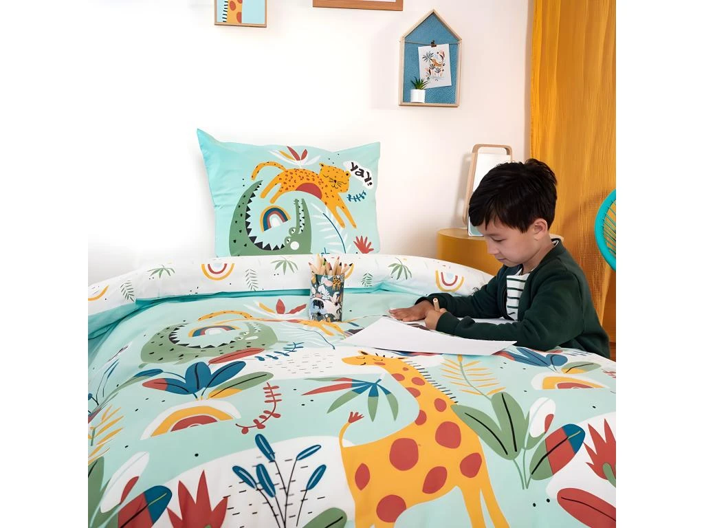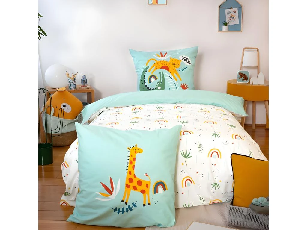 Parure de lit comprenant : 1 x housse de couette 140x200cm + 1 x taie d’oreiller 63x63cm