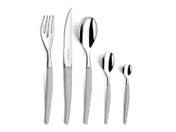 Le Jet Satin est une collection laguiole en acier monobloc et finition constrastée miroir & sablé. Le Jet Sablé se distingue par son design contemporain, souligné par un poinçon d’abeille moderne et stylisé. Les couteaux sont dotés d’une micro-denture pour une coupe optimale.