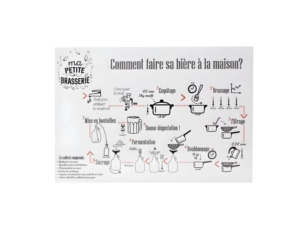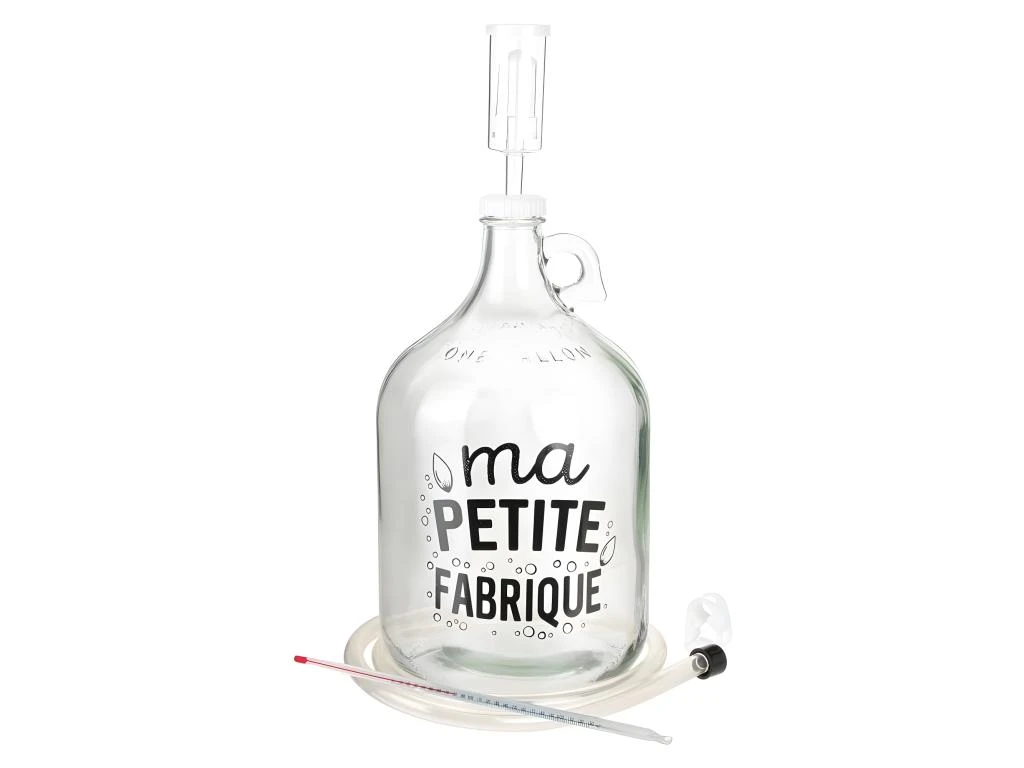 Composition : 1 bonbonne en verre « Dame Jeanne » + 1 bouchon percé et barboteur en U + 1 thermomètre en verre + 1 système de soutirage avec anti-lie et valve + 1 notice détaillée de la méthode tout grain