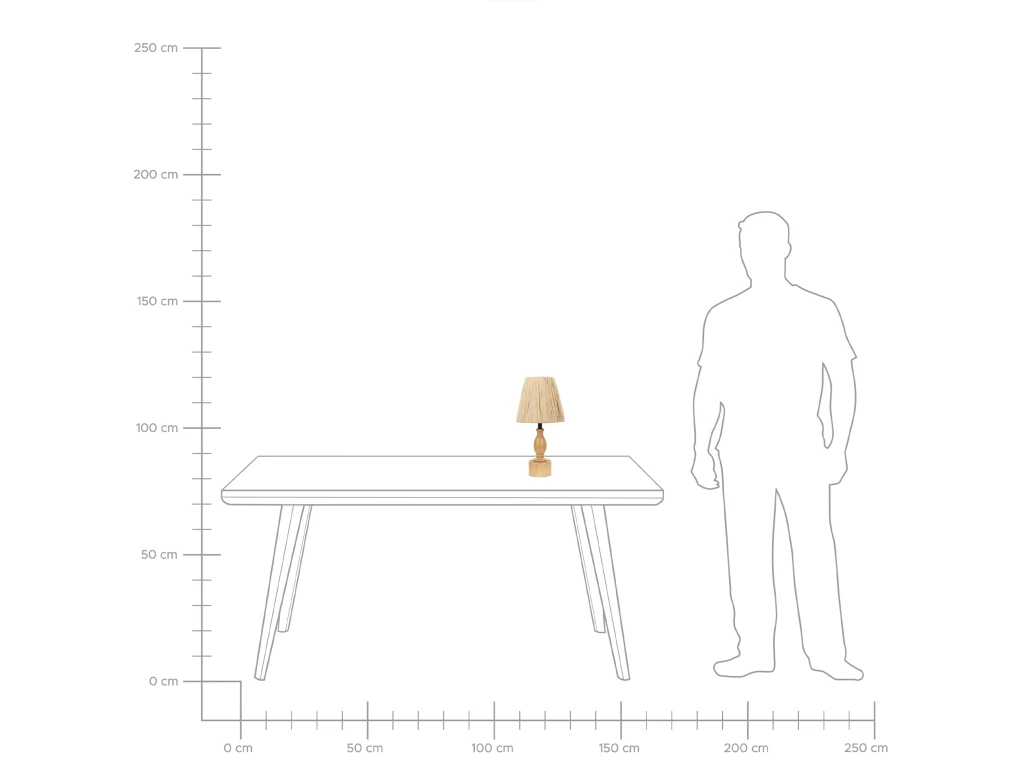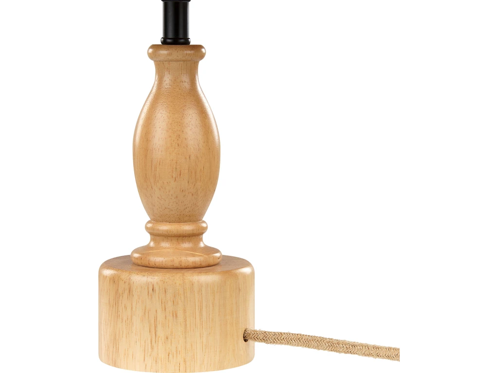 Lampe de table design. Ajoutez une touche de charme rustique grâce à cette lampe de table. Fabriquée à partir d’une base en bois de chêne robuste, sa tonalité claire évoque un sentiment d’élégance naturelle. L’abat-jour en papier texturé ajoute non seulement de l’attrait mais diffuse également la lumière pour créer une atmosphère chaleureuse et accueillante, parfaite pour les couloirs et les chambres à coucher. En complément de son style rustique, un cordon de jute ajoute une couche supplémentaire de caractère naturelle, faisant de cette lampe une parfaite fusion d’artisanat et de confort. Détails: Type de produit: Lampe de chevet Style: Rustique Couleur principale: Naturel Type de matière: Bois solide Matière principale: Bois de chêne Matière secondaire: Papier Matière de la base: Bois de chêne Matière de l`abat-jour: Papier Forme: Conique Puissance: 40W Finition: Aspect naturel Ampoules requises: 1 Dimensions: Dimensions de la base: 10x10x20 Longueur du cable: 170 cm Profondeur: 20 cm Largeur: 20 cm Hauteur: 41 cm Poids: 1.5 kg L`offre inclue: 1 x Lampe à poser, Non inclus : ampoule Caractéristiques clés: Se combine parfaitement avec une lumière ambiante, Solution parfaite pour la chambre et le salon, Crée une ambiance agréable, En harmonie avec n’importe quel type de décoration, Matières de haute qualité Informations d`assemblage: Préassemblé. 5 – 15 min Informations supplémentaires: Tout ajustement de la longueur du câble doit être effectué par un électricien., La lampe est conçue pour les ampoules d’efficacité comprise entre les catégories A à G, sur une échelle de A (la plus efficace en énergie) à G (la moins efficace). Convient pour les LED, les halogènes et les ampoules éconergétiques., Attention ! Ne pas ouvrir l’emballage avec un objet pointu ou coupant qui risquerait d’endommager le produit. Conseils de maintenance: Bois de chêne: 1.De temps en temps, il est conseillé de mettre une nouvelle couche d’huile sur les meubles avec une finition huilée 2.Essuyez immédiatement après le nettoyage pour empêcher l’eau de s’accumuler sur les meubles 3.Nettoyez avec un chiffon et un nettoyant doux dans le sens du grain du bois. Papier: Pour éliminer la poussière utilisez une brosse douce