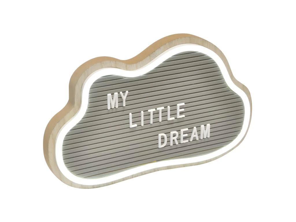 Une lampe Veilleuse avec un cadre neon en forme de nuage : My little dream Dimension 29 x 2 x 18 cm Matière : bois verre metal IP20 Fonctionne avec deux piles AAA non incluses Les piles ne doivent pas etre rechargees Ne pas melanger differents types de piles ni des piles neuves avec des usagees Les piles doivent etre mises en respectant les polarites inclus des lettres pour changer le message