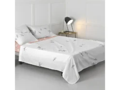 Drap Plat 1 Place Et 2 Places 100% Coton/57 Fils/cm² – Gris Clair – 180 X 290 Cm Pour Lit 1 Place