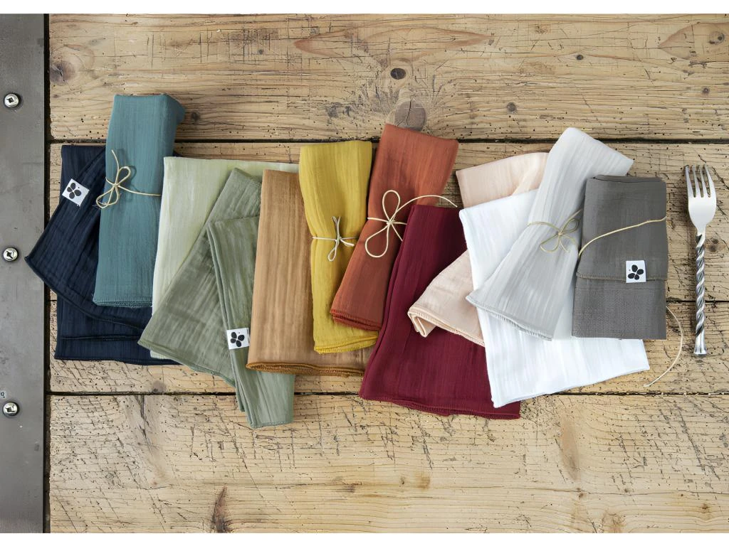 Pour profiter de ce textile fluide et aérien jusque dans votre cuisine, L’Effet papillon propose du linge haut de gamme très doux et agréable au toucher.