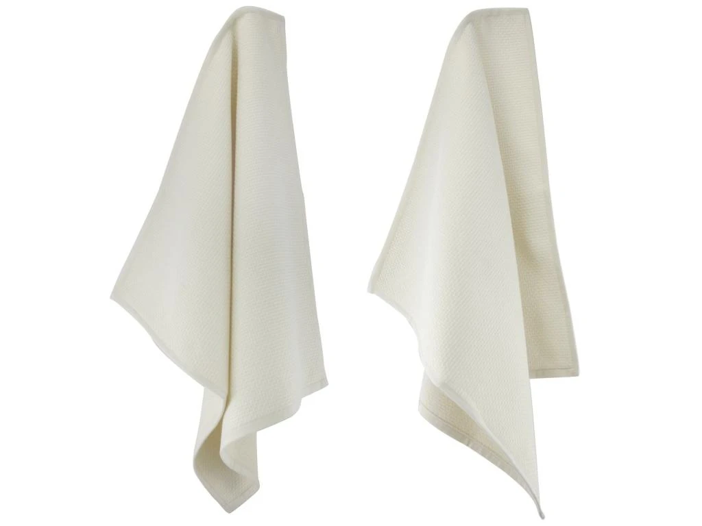 LOT DE 2 TORCHONS DE CUISINE 50×50 cm, 100% COTON 400 g/m2 – PURE KITCHEN WAFFLE IVOIRE