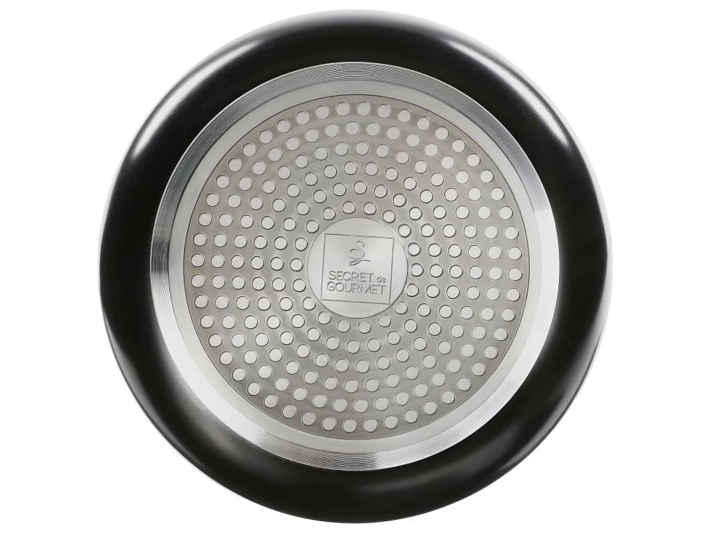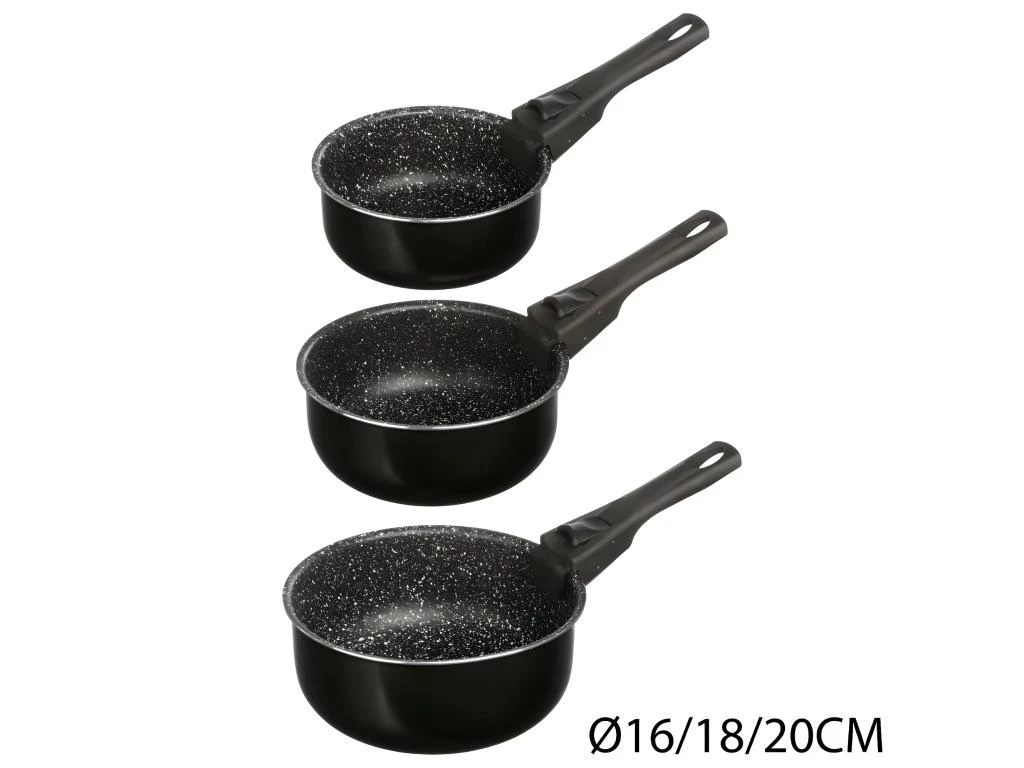 Lot de 3 casseroles pierres + poignées, aluminium pressé, dimensions D. 16 / D. 18/ D. 20 cmCouleur : NoirDimensions (L x l x H) : 21,4 x 21,4 x 9 cmMarque : SECRET DE GOURMETMatière(s) : Aluminium, plastique
