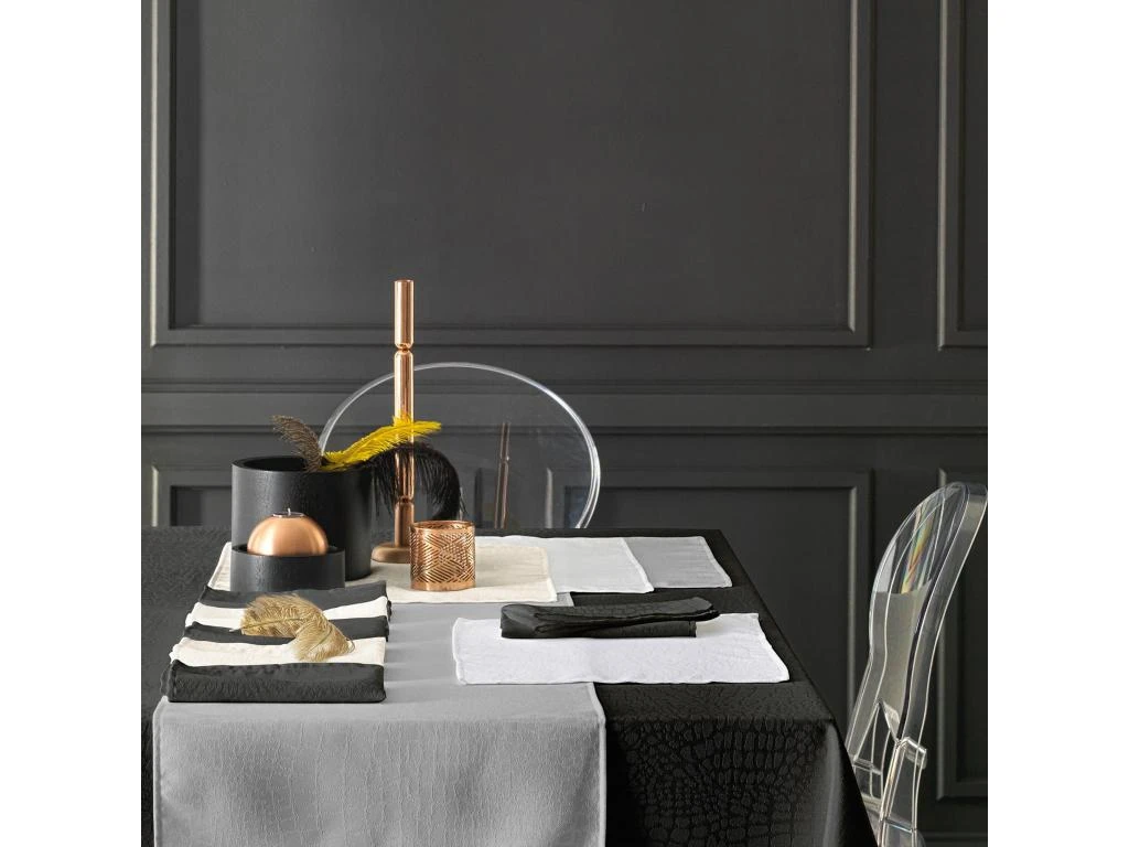 Serviette de table « Lounge » élégante et ultra-tendance en damassé 100% polyester avec ces motifs effet croco tissés jacquard. Serviette de table très chic qui habillera votre table avec beaucoup d’élégance.