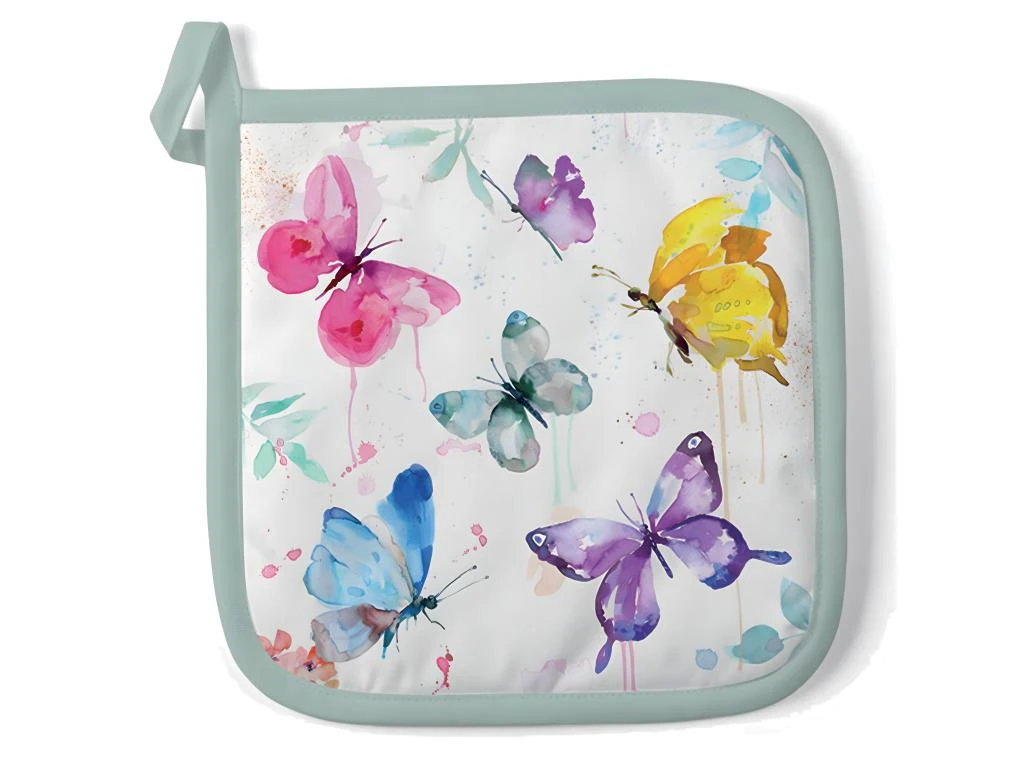 Manique de cuisine Papillons Tissu extérieur : 100 % coton Garnissage : 100 % polyester Doublure : 100 % polypropylène Dimensions : 20 x 20 cm A l’unité