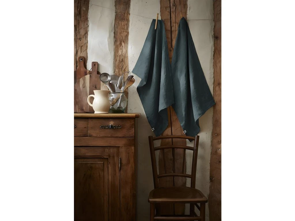 Lot de 2 Torchons Essuie-vaisselle 50x70cm Lin Lavé Ardoise de la gamme Margaux.