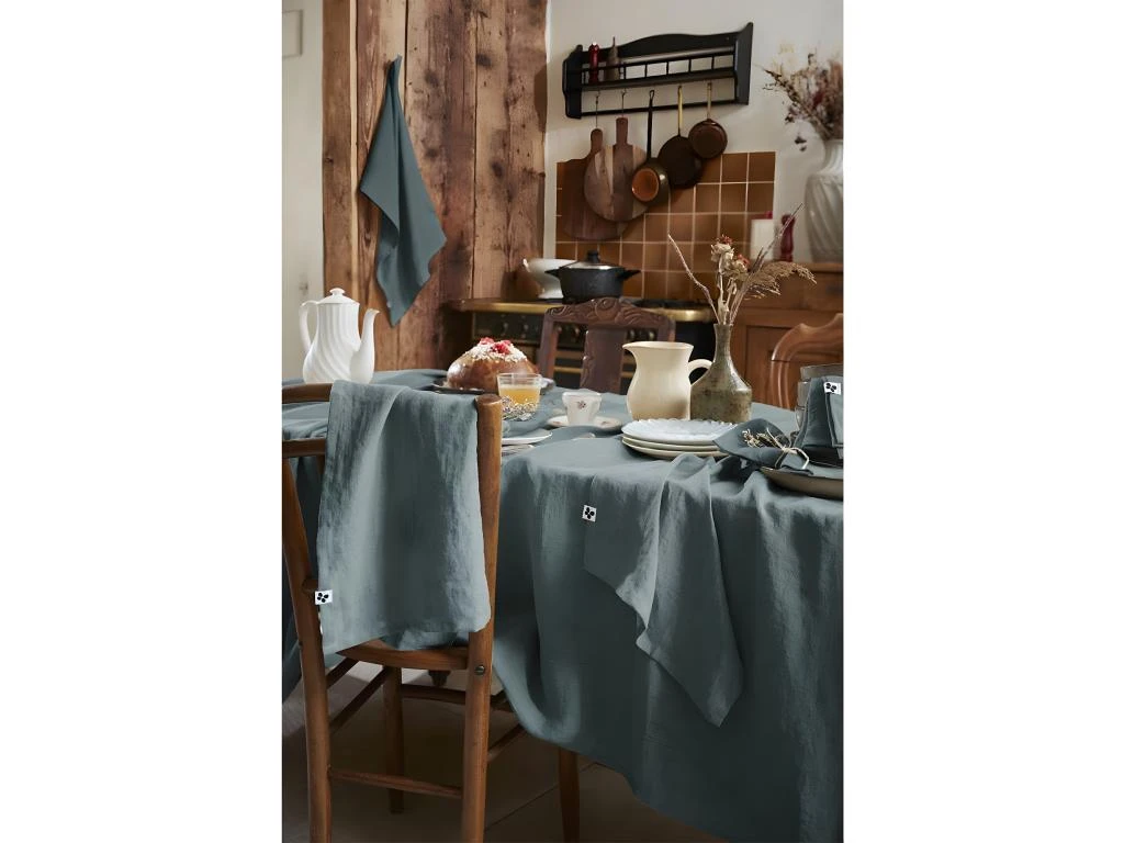 Fabrication 100% Lin, densité 160 g/m2. Bords avec ourlet simple. Produit certifié OEKO-TEX.