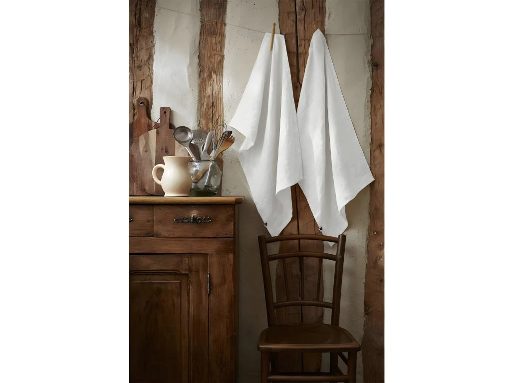Lot de 2 Torchons Essuie-vaisselle 50x70cm Lin Lavé Craie de la gamme Margaux.