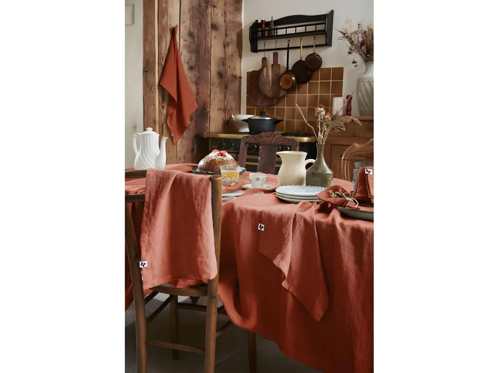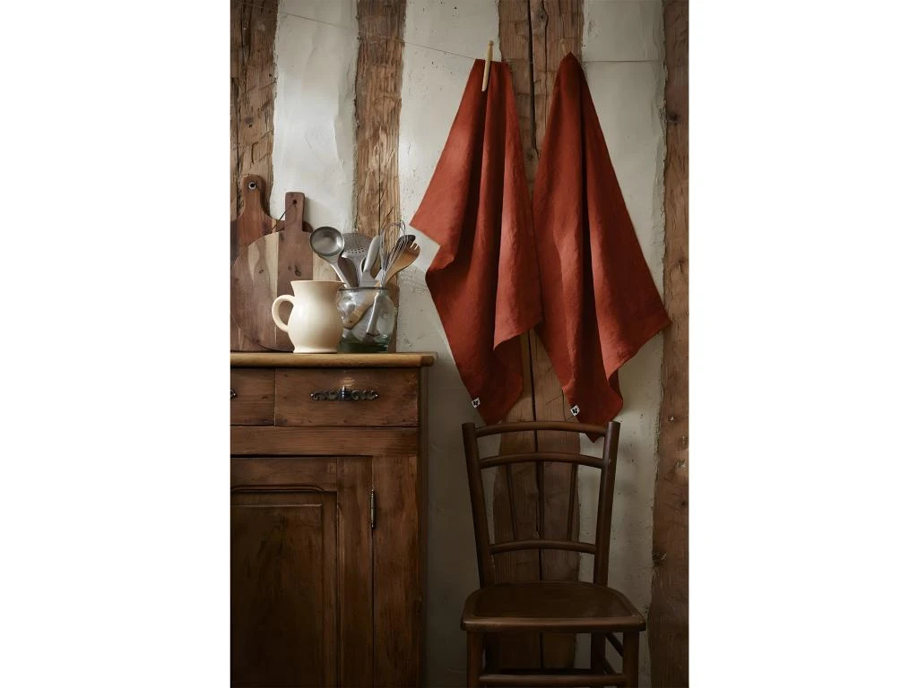 Lot de 2 Torchons Essuie-vaisselle 50x70cm Lin Lavé Paprika de la gamme Margaux.