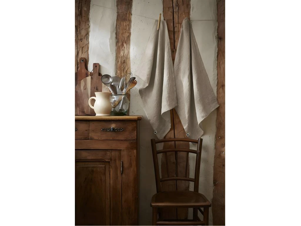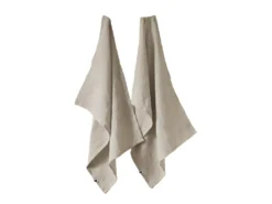 Lot de 2 Torchons Essuie-vaisselle 50x70cm Lin Lavé Sable de la gamme Margaux.