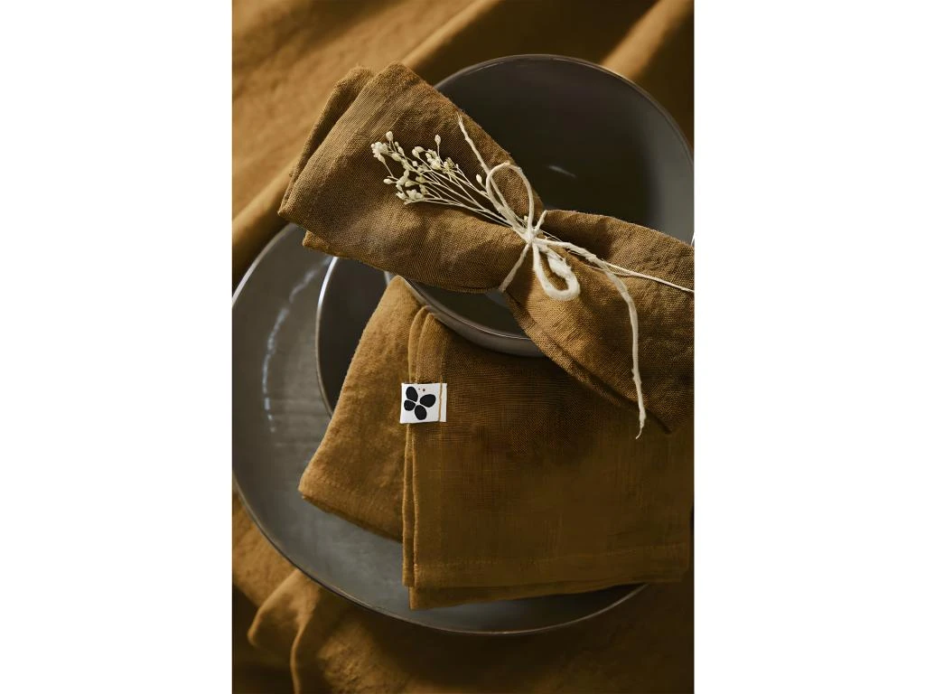 Lot de 3 Serviettes 40x40cm Lin Lavé Coloris Caramel de la gamme Margaux.