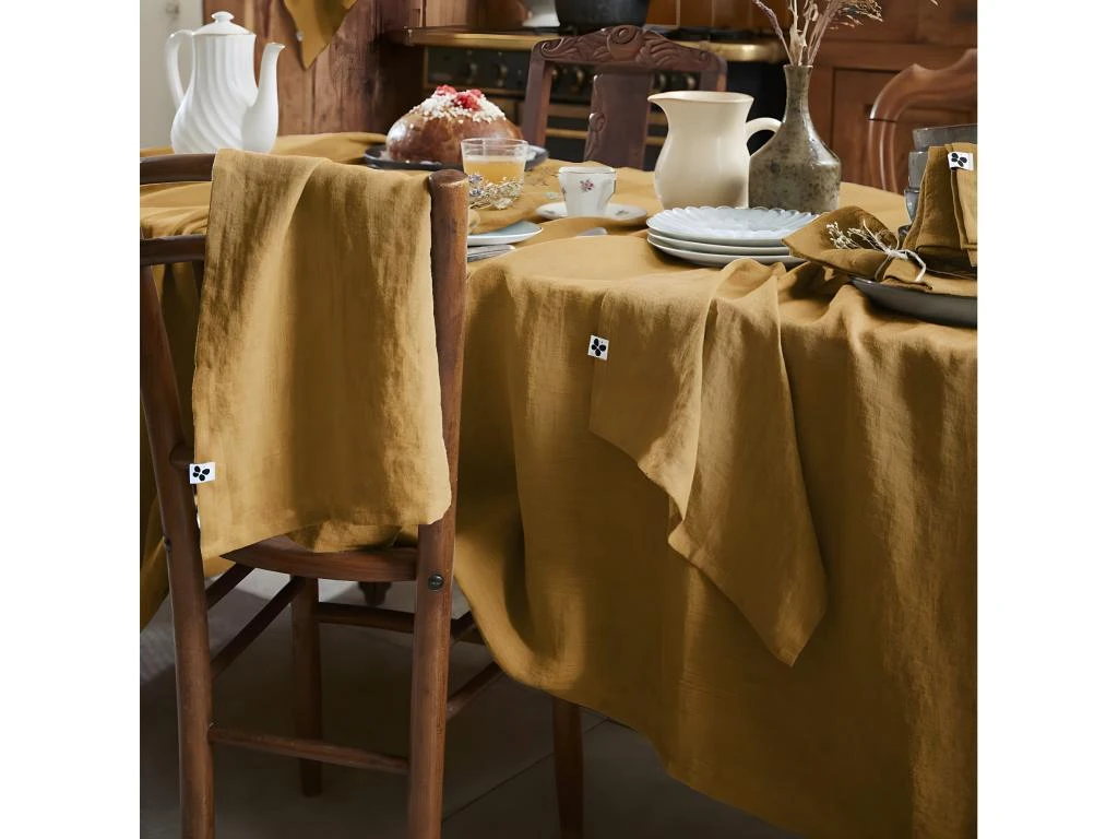 Fabrication 100% Lin, densité 160 g/m2. Coutures des bords en points de bourdon ton sur ton (anti-effilochage). Produit certifié OEKO-TEX.