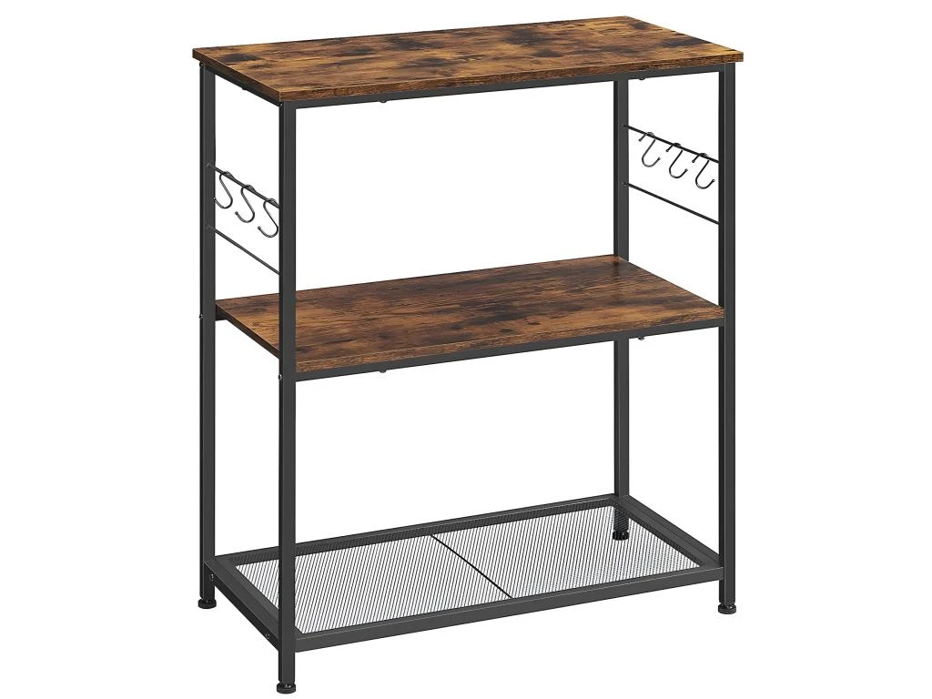 Mettez votre micro-ondes, votre grille-pain et votre bouilloire sur les 3 étagères ouvertes et suspendez des cuillères et des spatules sur les crochets.