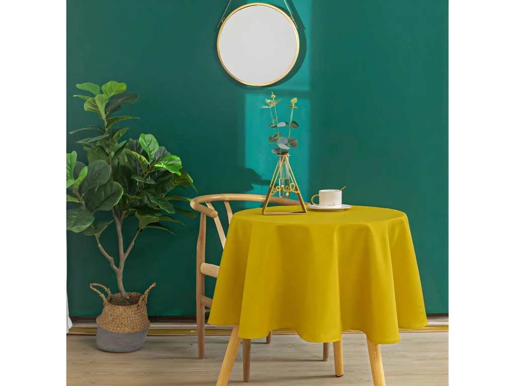 Nappe ronde anti-tâches 100% polyester. Traitement anti-déperlant.