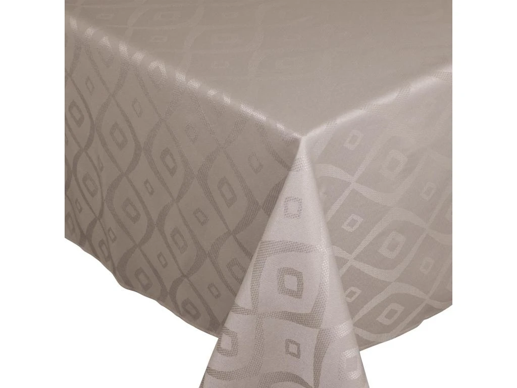Nappe « Brunch » élégante et raffinée en damassé Jacquard 100% polyester avec ces motifs en forme de losange. Nappe très chic qui habillera votre table avec beaucoup d’élégance.