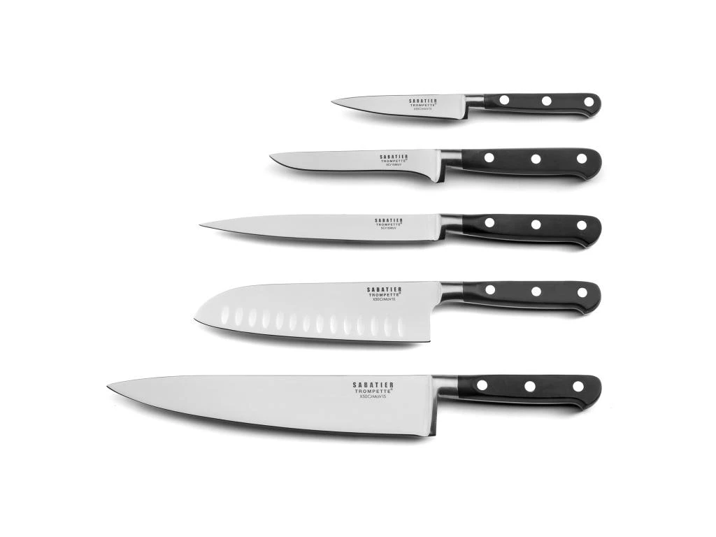 La marque Sabatier Trompette est née au début du 18ème siècle dans le bassin de Thiers, capitale de la coutellerie en France. Les gammes de couteaux de la marque Sabatier Trompette répondent aux usages spécifiques de la préparation culinaire. Forme de la lame, ergonomie du manche, faible poids et parfait équilibre sont étudiés afin d’obtenir des outils parfaits pour les Chefs amateurs ou confirmés.