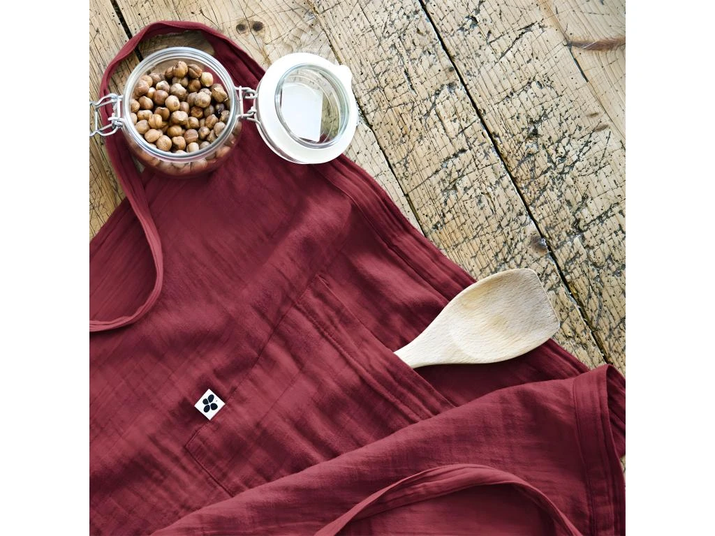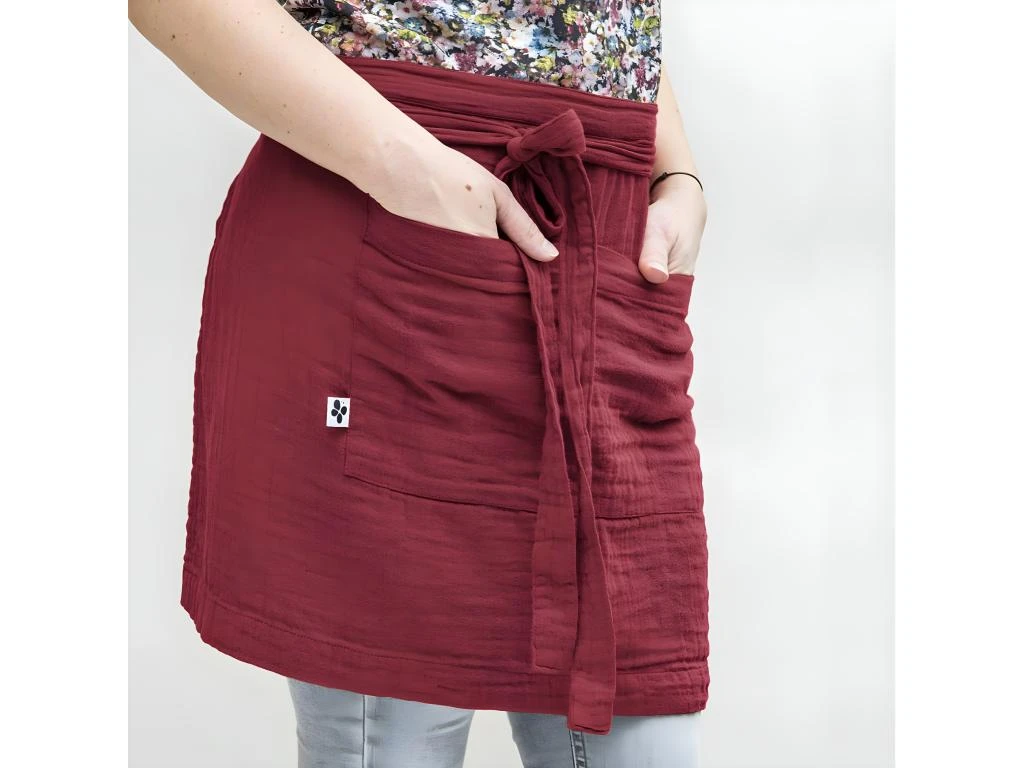 Demi-Tablier avec Double Poche Gaze de Coton Lie de vin Ourea.